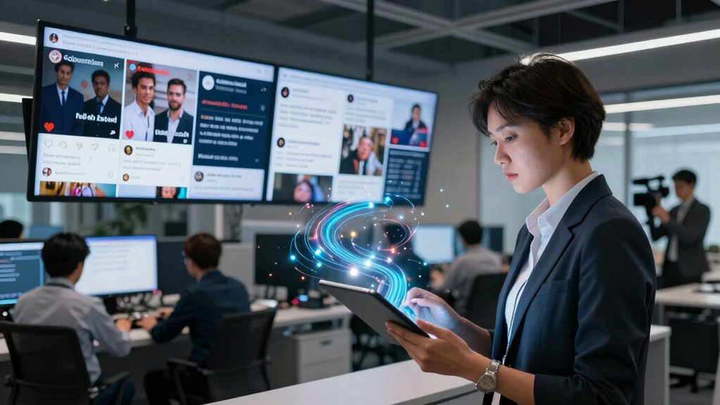 Social media algorithms greatly influence viral stories by prioritizing engaging content, often regardless of content authenticity. You might notice that sensational or emotionally charged stories get boosted more, sometimes through algorithm manipulation. This accelerates their spread before verification, making them go viral quickly. As a user, you could unknowingly contribute to this cycle, sharing stories that seem compelling but haven’t been fully verified, amplifying their reach through algorithm-driven visibility.