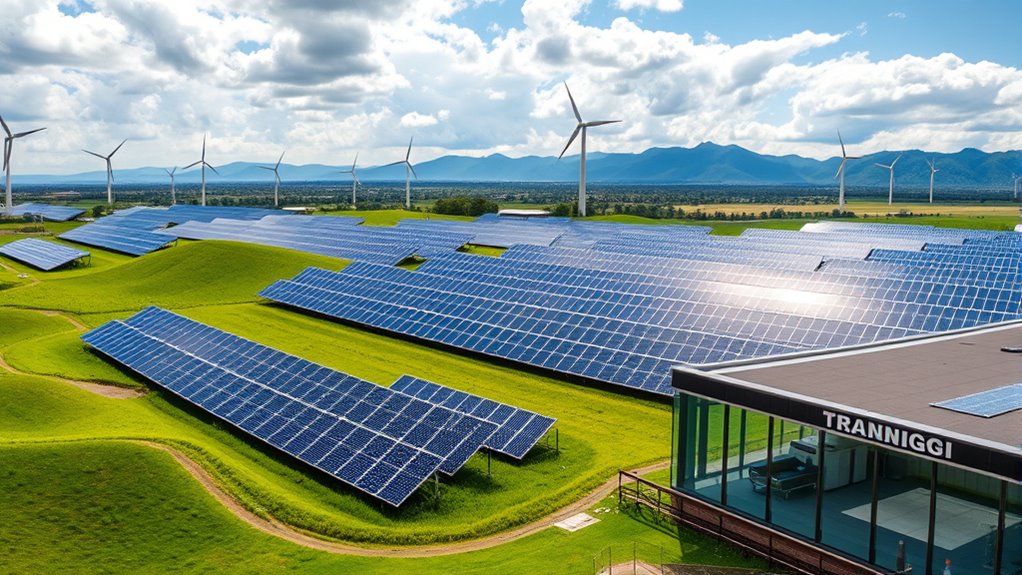 Technological breakthroughs boost your renewable investments by making projects more profitable and reliable. Smart grids optimize energy flow, reducing costs and enhancing efficiency, while advanced battery storage ensures power persists even when conditions change. These innovations lower risks, improve returns, and open new opportunities. By embracing cutting-edge tech, you position yourself ahead of the curve, maximizing benefits and minimizing uncertainties in your renewable energy ventures.