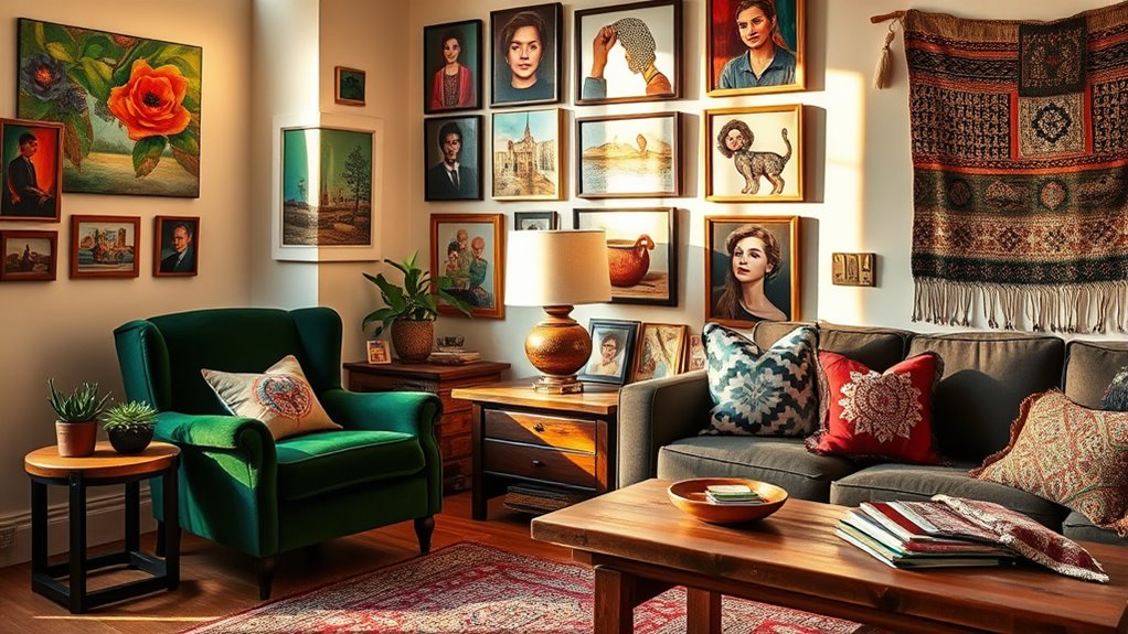 Want to transform your space without breaking the bank? Start with affordable art from thrift stores or online marketplaces, adding unique touches that reflect your personality. Create creative displays using everyday items like vintage jars, photos, or handmade crafts to personalize your home. These simple, budget-friendly ideas not only make your space truly yours but also keep your wallet happy. Who knew that expression could be so affordable?