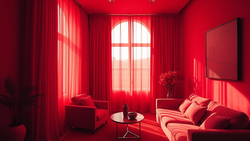 In a color-drenched room, every choice matters. You want your lighting accents to enhance the color’s vibrancy, creating a layered effect that draws the eye and adds complexity. Your furniture choices should support and amplify the bold aesthetic, not compete with it. When you strike this balance, your space becomes a true reflection of your daring style—alive with energy and personality. With careful attention to lighting and furniture, you’ll find that even the most daring monochrome rooms feel harmonious and inviting, turning your living space into a true masterpiece of color.