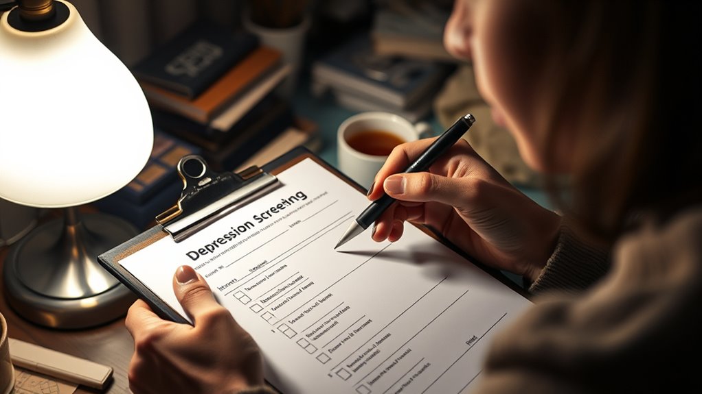 Depression screening is important because it helps you catch symptoms early, so you can get the treatment you need before things worsen. Regular screening allows healthcare providers to identify signs like persistent sadness or fatigue quickly, leading to timely intervention. Early detection can improve your overall well-being and prevent depression from affecting your daily life and relationships. Understanding the importance of screening can help you recognize why staying proactive about mental health matters—keep going to learn more.