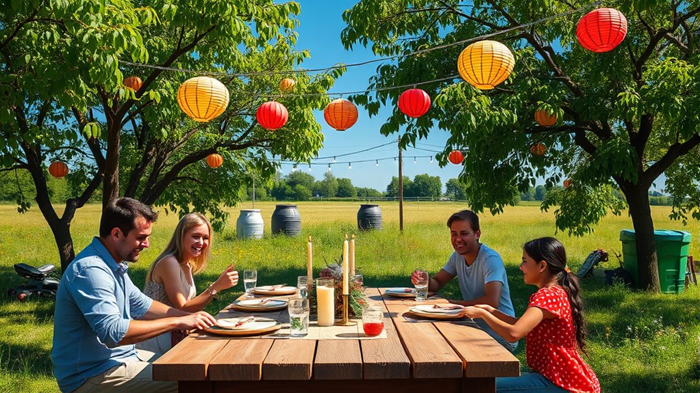 Imagine a table full of vibrant dishes, laughter echoing as you use reusable tableware instead of disposables. To cut waste, encourage guests to bring their own containers and plates. Practice composting tips by collecting food scraps and biodegradable waste, turning them into nutrient-rich soil. This way, you create joyful celebrations while reducing your environmental footprint, making your festivities both memorable and eco-friendly.