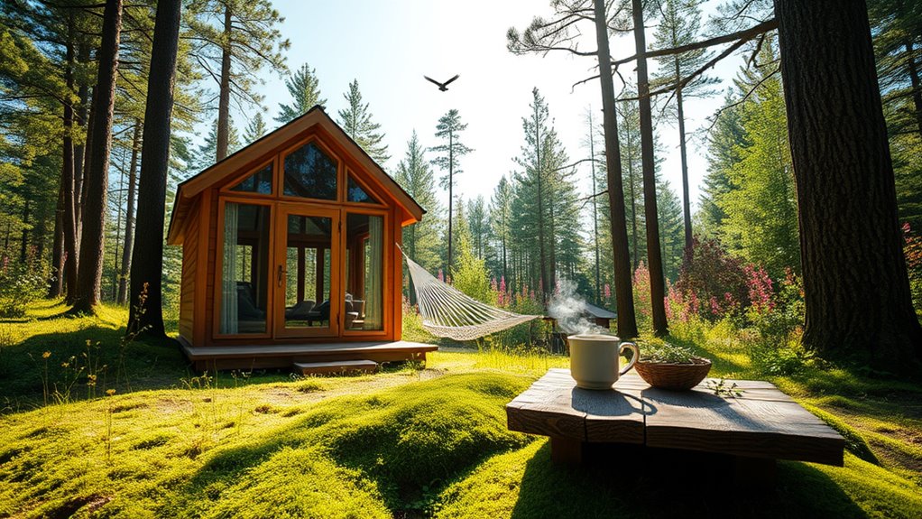 Micro-retreats fit easily into your busy life, offering brief, focused breaks that can immediately reduce stress and boost mental clarity. Unlike week-long vacations, these short practices—like outdoor mindfulness or breathing exercises—are sustainable and more likely to be repeated regularly. They help you disconnect from digital distractions and incorporate nature’s calming effects into daily routines. Keep exploring to discover how these small escapes can deliver powerful, lasting stress relief without taking extensive time away.