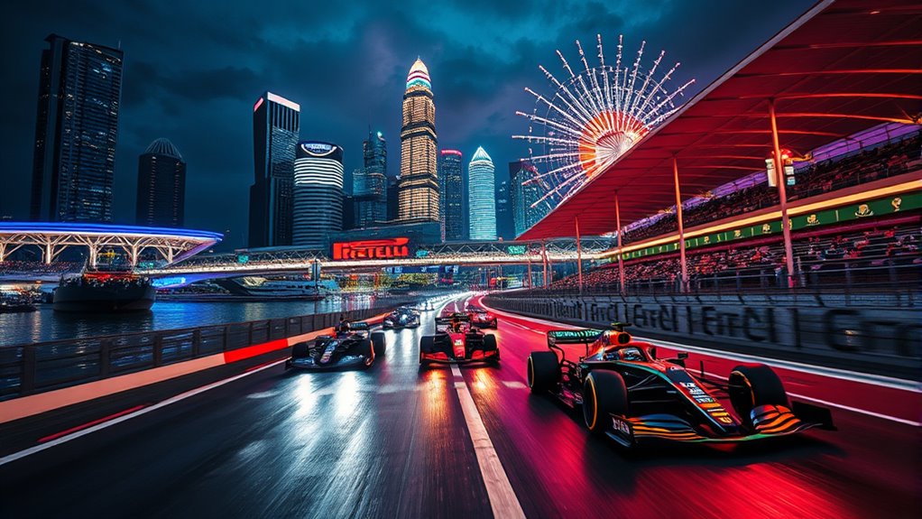 As the Singapore Sprint shines under shimmering stars, you’ve witnessed a night race that’s truly thrilling. The twists, turns, and thunderous cheers evoke excitement, adrenaline, and awe. This glorious grand prix leaves you longing for more, craving the mesmerizing chaos and courageous competition. The Singapore Grand Prix 2025 has proven it’s a spectacular spectacle, a sensational showcase of speed and skill. So, stay tuned, because this night race’s memories will surely motivate and mesmerize you long after the lights go out.