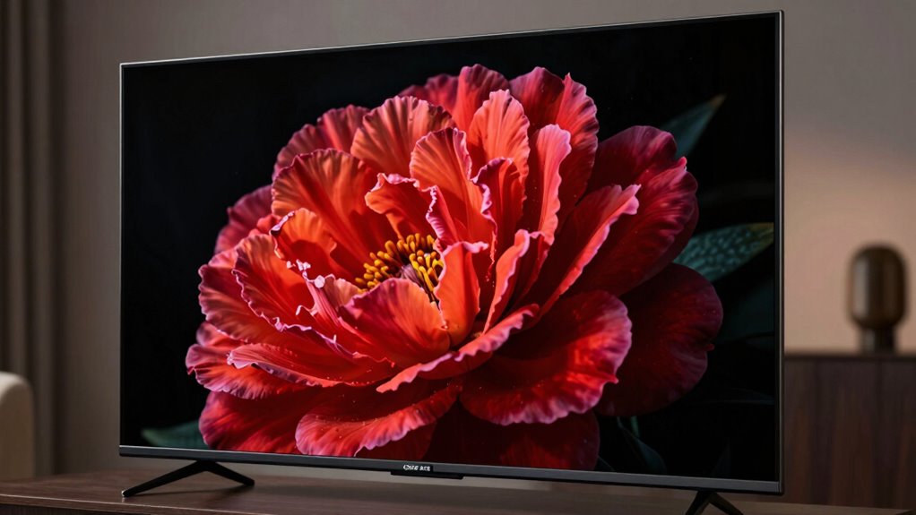 Many buyers miss the significance of calibration, which is a simple yet impactful step. Even a basic calibration using the TV’s built-in settings can enhance picture quality noticeably. The goal is to fine-tune the display so that colors look natural and details are clear, especially in darker scenes where OLED excels. Proper installation isn’t just about mounting the TV at eye level; it’s also about ensuring the viewing distance is appropriate. Sitting too close or too far can diminish the immersive effect and distort the perceived picture quality. Ideally, you want to position yourself at a distance where the entire screen fits comfortably in your field of view. Additionally, understanding screen calibration process can further optimize your viewing experience. When you take the time to learn about proper installation setup, you ensure that you’re maximizing your TV’s potential in any room. Remember, the effort you put into understanding installation tips and calibration isn’t just about aesthetics—it’s about truly experiencing the rich, detailed images that OLED technology offers. When you pay attention to these details, your 75-inch OLED TV won’t just be a big screen; it’ll be a window to a more vibrant, lifelike viewing experience.